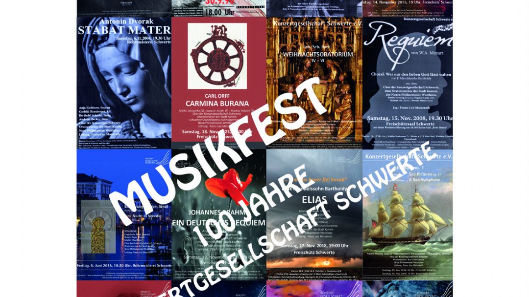 Die Konzertgesellschaft Schwerte lädt zur Feier ihres 100-jährigen Bestehens die Bürgerinnen und Bürger der Stadt Schwerte zu einem großen Musikfest am 31. Mai 2026 in Halle 2 und 3 der Rohrmeisterei Schwerte ein.